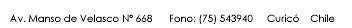 : Avenida manso de Velasco Nº 668 |